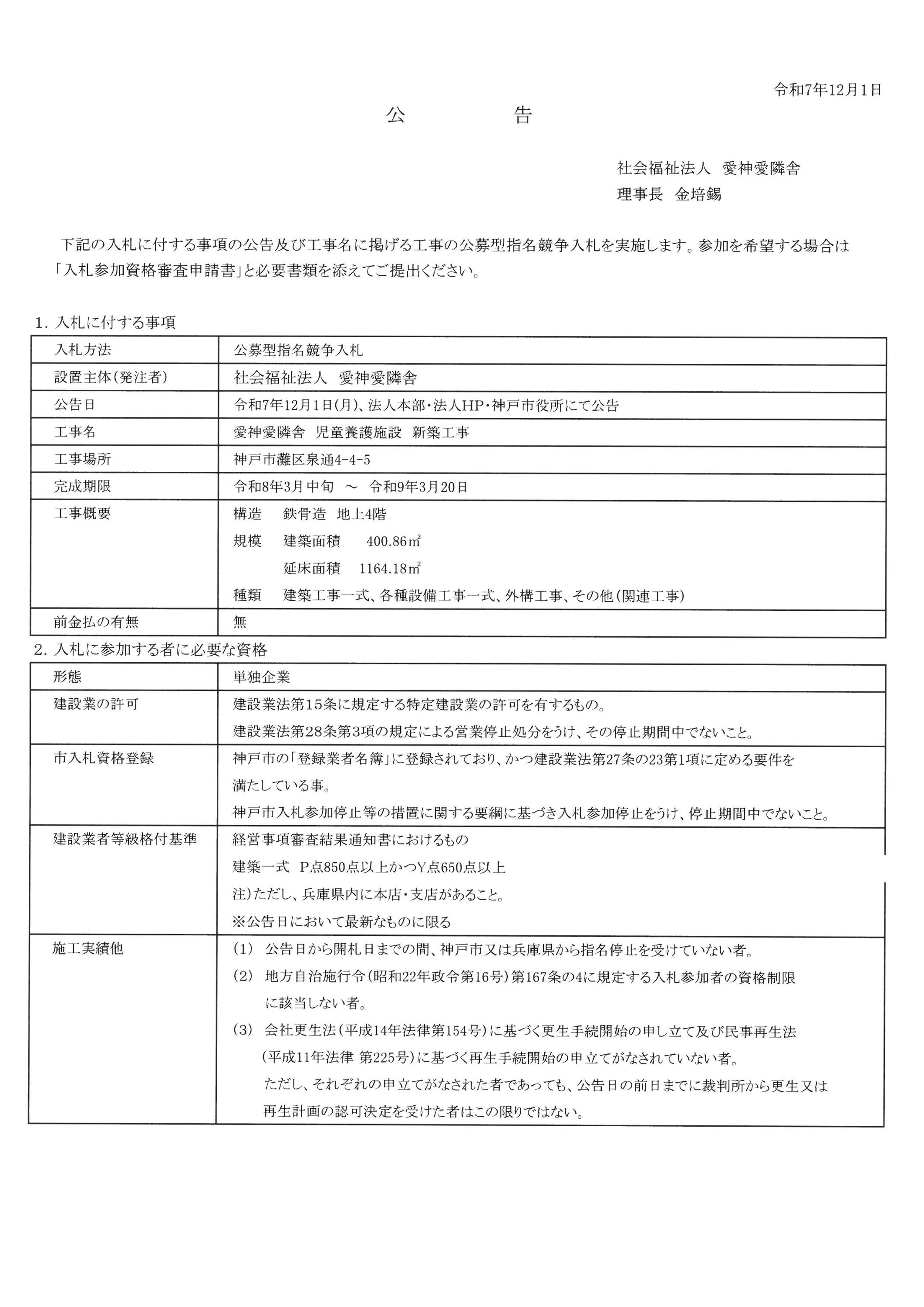 この度、下記資料内の日程で公募型指名競争入札を実施いたしますので、